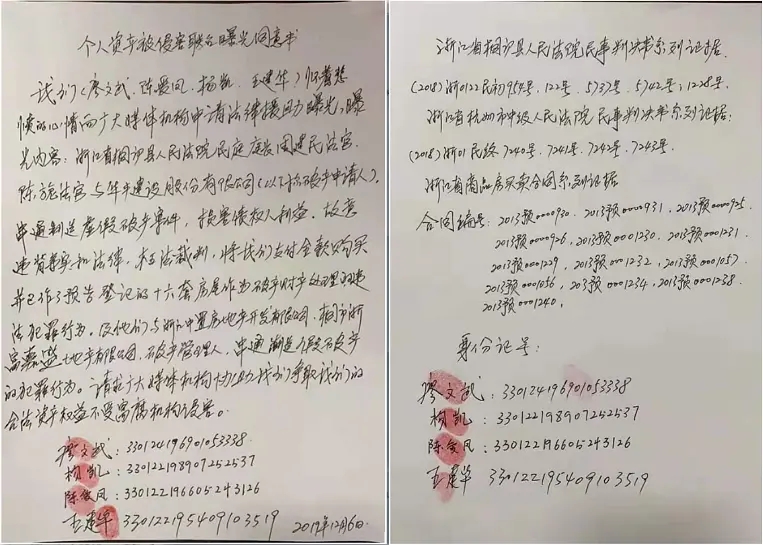 记者夤辉经过长达1个多月的实地走访调查,浙江省桐庐县地方审判机构民庭负责人周建民、陈旎、吴海祥、郑霞等故意违背事实和法律,枉法裁判。请上级主管部门务必以百姓利益为重,彻底从根上拔掉这些长期专门以权侵占百姓合法资产为目的的官场窝腐毒瘤,早日追回百姓的合法资产!